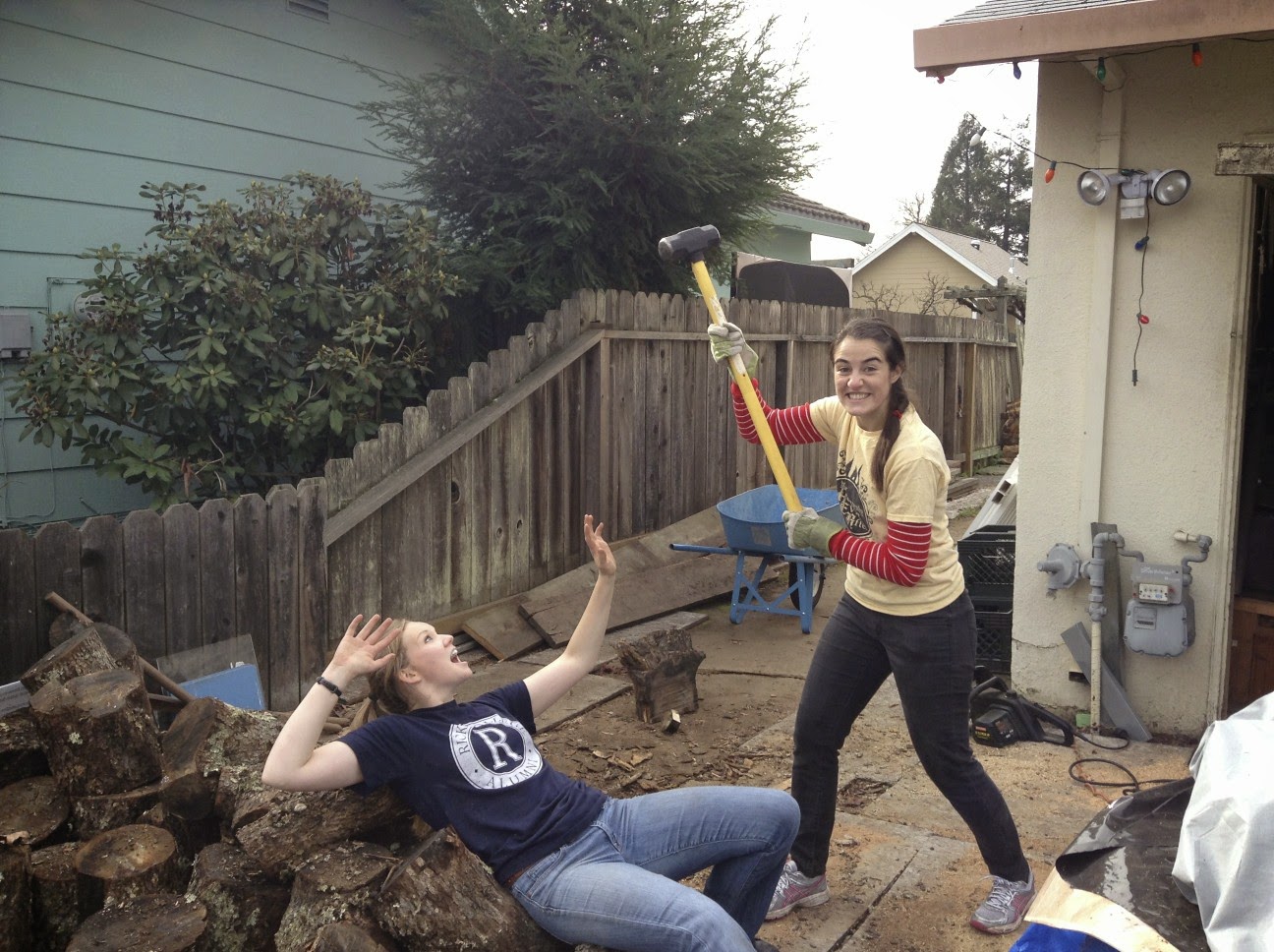 Last week 4 of us sisters went to a members house to chop wood. I have never felt more useless and girly in all my life. When we got to his house he walked us to the pile of wood, handed us a sledge hammer and a couple wedges and told us to go for it. We all took a good look at the pile of wood, then at each other, and busted out laughing. We were there for a while and barely made a dent in the pile, but I feel much more manly now... We assured the poor little old man that we would get elders to help him next time seeing as he did more work than the 4 of us combined.